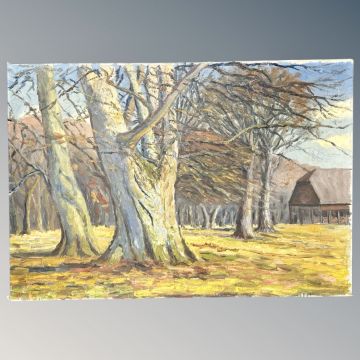 Continental School : Trees in autumn, oil on canvas, 97 cm x 67 cm, unframed.