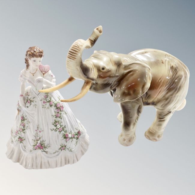 A Royal Dux figure of an elephant (a/f) together with a further Royal Worcester limited edition figure, Queen of Hearts.