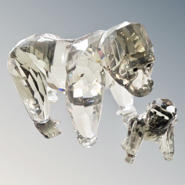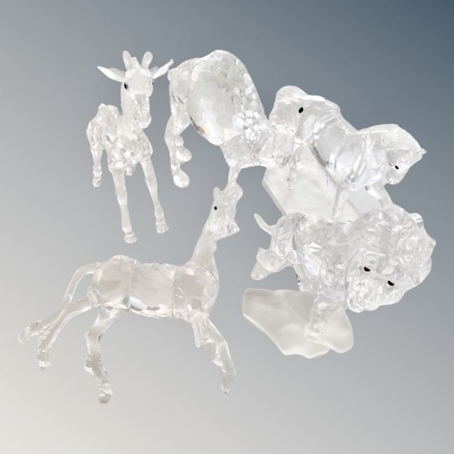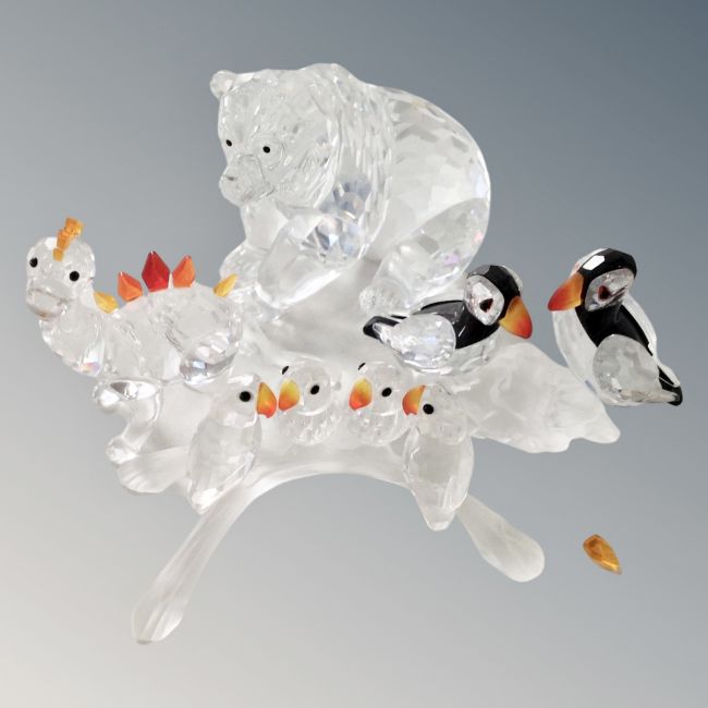 A tray containing a large quantity of Swavoski crystal and other glass animal ornaments (some damages).