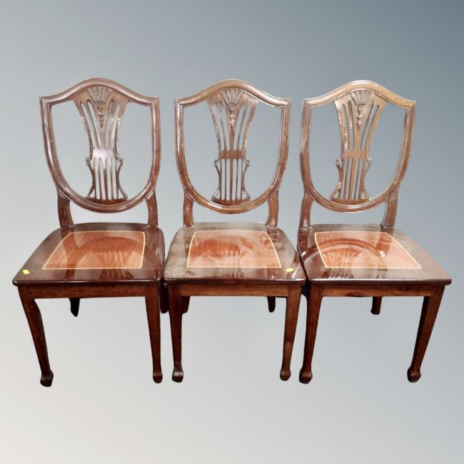 A set of six reproduction shield back dining