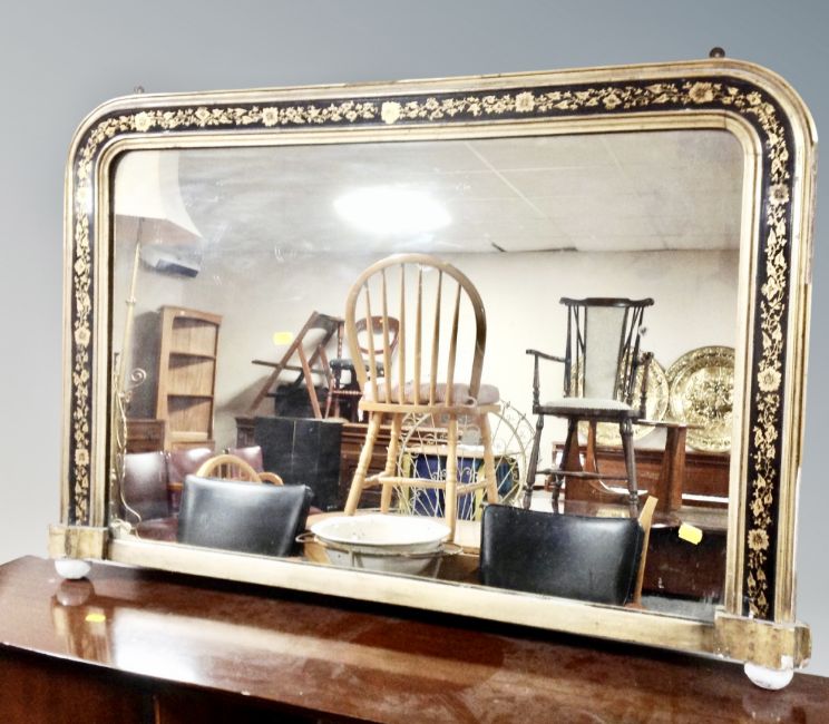A Victorian black and gilt overmantel mirror