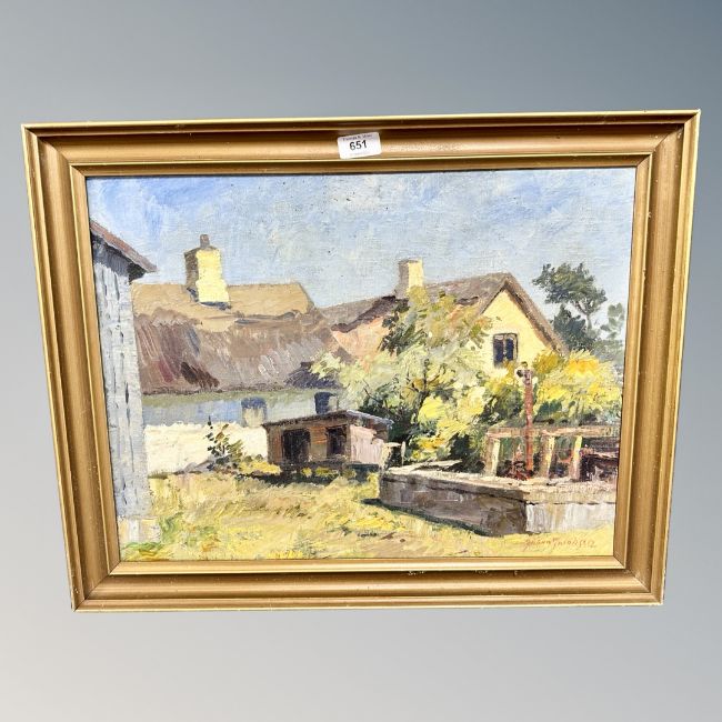 Johan Jacobsen : Farmstead, oil on canvas, 50 cm x 37 cm