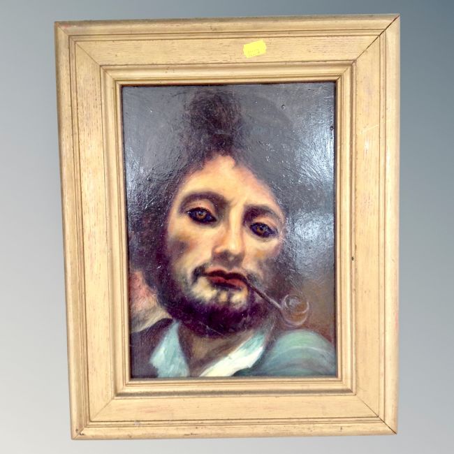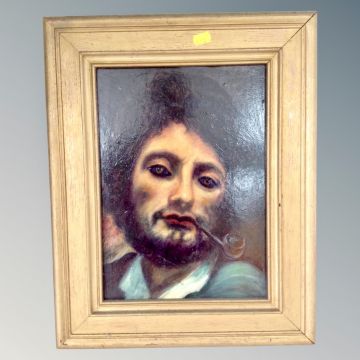 A 20th century oil on board : portrait of a man smoking a pipe, 33cm by 24cm, in gilt frame