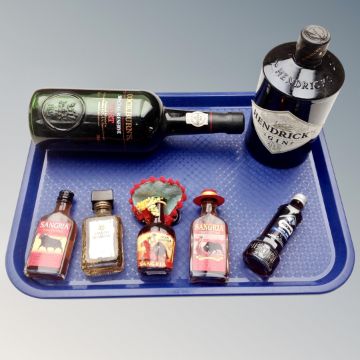 A bottle of Hendrick's gin, 70cl, a bottle of Cockburn's Special Reserve port 75cl and five alcohol miniatures