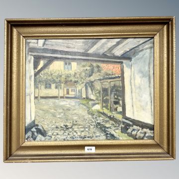 Continental School : A cobbled lane, oil on canvas, 49 cm x 39 cm, dated 1951