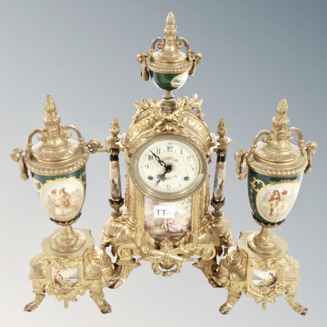 An ornate reproduction three piece clock garniture set