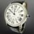 Cartier Ronde stainless steel automatic calendar wristwatch, silvered dial with Roman and Arabic numerals, secret signature at 7 o' clock, date aperture at 3 o' clock, synthetic sapphire cabochon-set crown, on a Cartier black leather and stainless steel bracelet with deploying clasp, case 42mm.