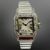 Cartier Santos Galbee stainless steel diamond-set automatic wristwatch, textured and silvered dial with secret signature at 10 o' clock, date aperture between 4 and 5 o' clock, synthetic sapphire cabochon-set crown, Cartier steel bracelet with deploying clasp, case 24mm.