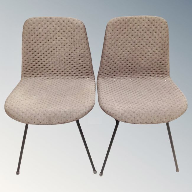 A pair of Danish Asger Soelberg design fabric upholstered chairs on metal legs.