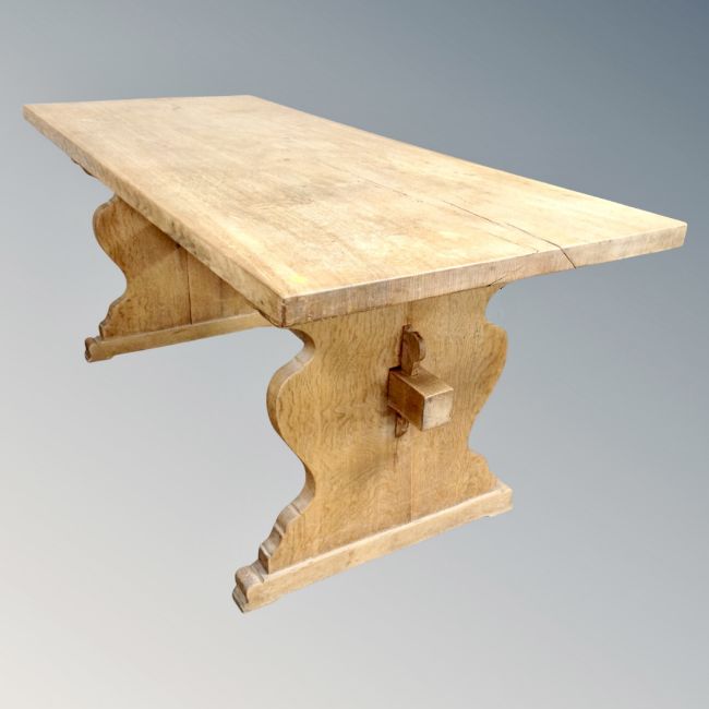 An oak refectory dining table.