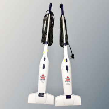 An AEG LI-35 Ergorapdo lithium two in one upright cordless electric vacuum together with two Bissell featherweight bagless stick vacuums.
