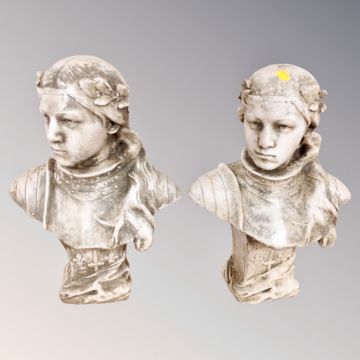 A pair of composition busts of Joan of Arc, height 41 cm.