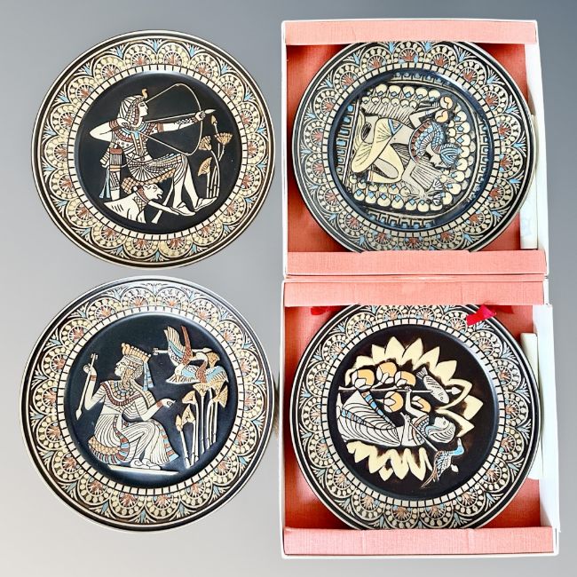 Four Denby Egyptian limited edition collector's plates, two boxed.