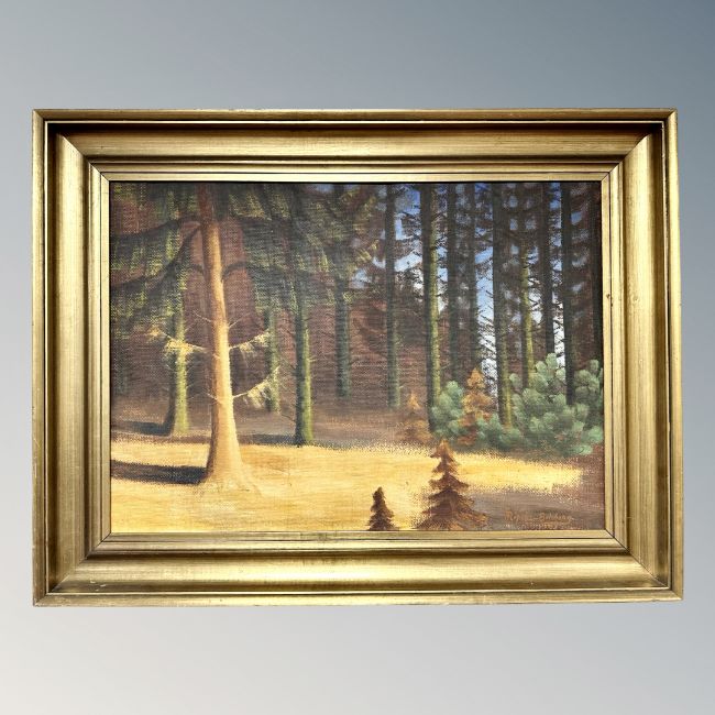 Rincke Edsbung : A view in a forest, oil on canvas, 66cm by 46cm