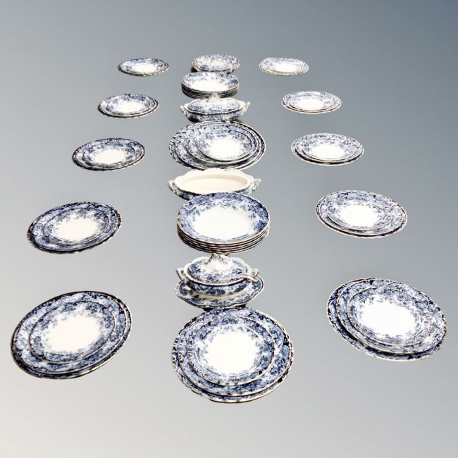 Fifty-six pieces of 19th century Chatsworth blue and white dinner ware