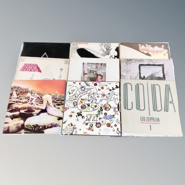 Nine vinyl records by Led Zeppelin and Pink Floyd