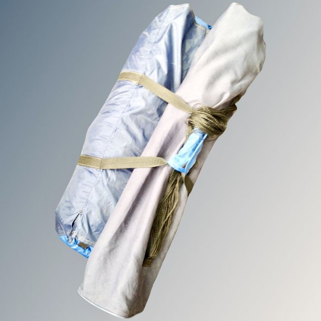 Four person dome tent in carry bag and a folding chair