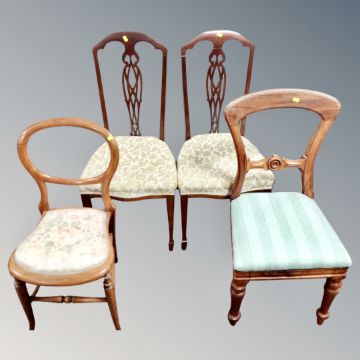 A pair of 19th century mahogany high backed dining chairs together with a further antique dining chair and bedroom chair