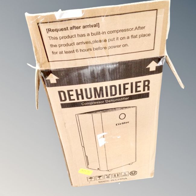 A Corlitec OL12-D0-23C dehumidifier, boxed.