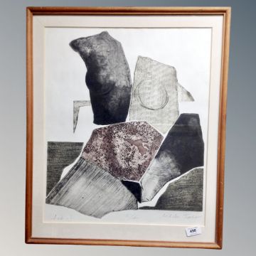 A Continental monochrome print - abstract, signed in pencil, 50 cm x 42 cm
