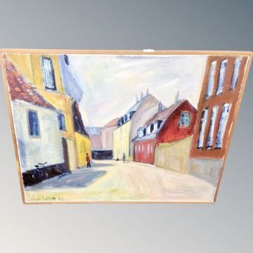 Continental School : Figures in a street, oil on canvas, 81 cm x 64 cm