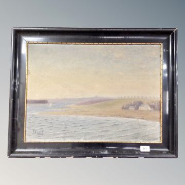Continental School : View across a coast, oil on board, 55 cm x 40 cm