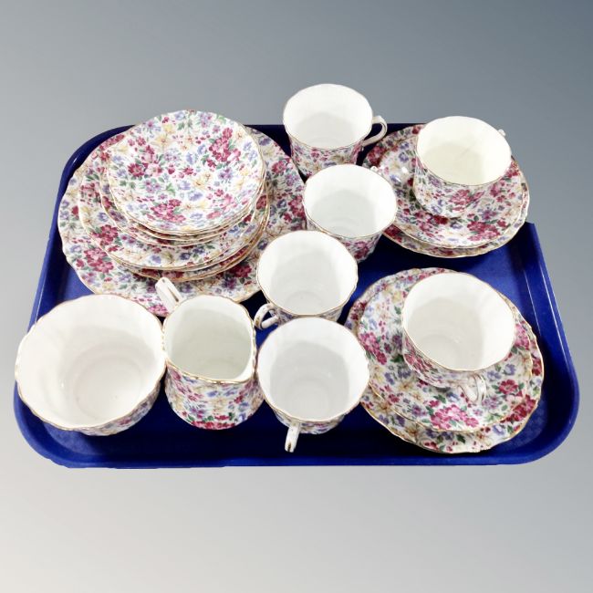 A tray of twenty one pieces of old Royal floral pattern bone china