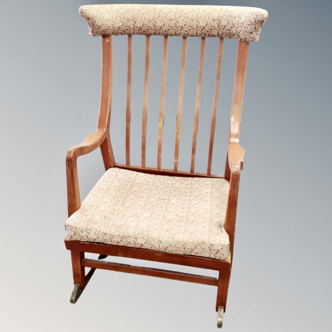 A mid century beech spindle backed rocking chair