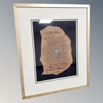 An Arabic verse on leather in display flame , 62 cm x 52 cm
