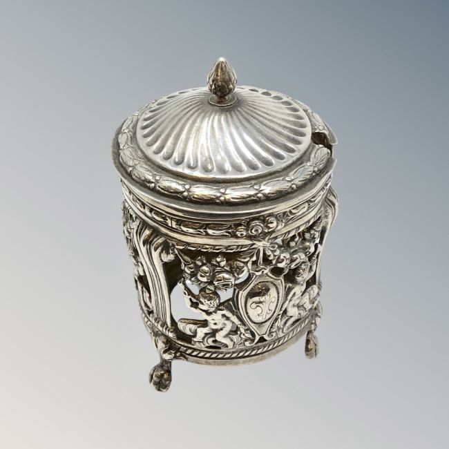 An early French silver mustard pot, circa 1800, lacking liner, 5.2oz.