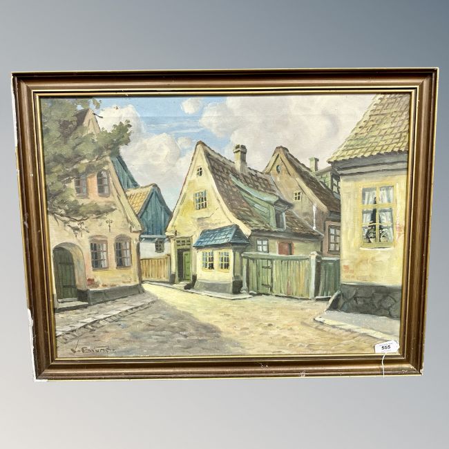 V. Givao : cottages in a street, oil on canvas, 64 cm x 47 cm