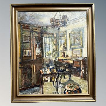 Continental school : study interior, oil on canvas, 49 cm x 59 cm