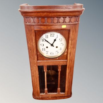 An Edwardian oak cased eight-day wall clock (af)