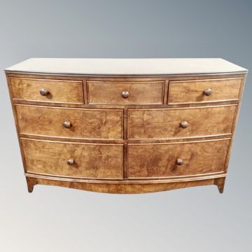 A Victorian style bow fronted seven drawer chest