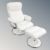 A pair of contemporary white faux leather chrome metal framed swivel relaxer chairs with footstools