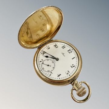 An antique Dennison gold plated full hunter pocket watch, Zenith movement no. 2766253