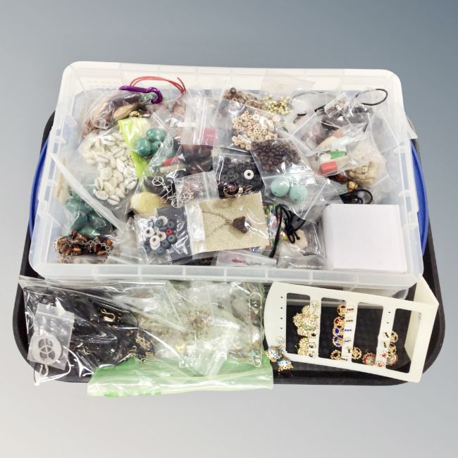 A tray of costume jewellery, beads, earrings, semi precious rocks etc