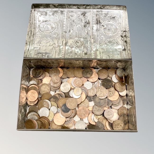 A 'Holland treasure chest' tin containing a large quantity of Victorian and later British coins. (Q)
