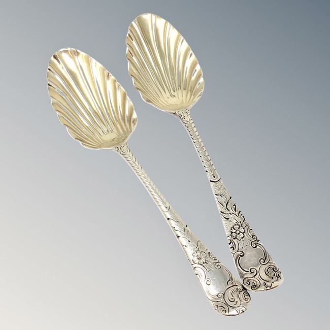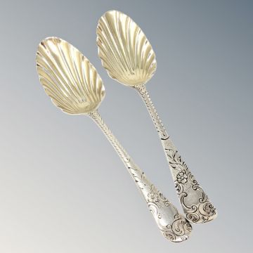 Two nice quality silver-gilt engraved spoons, one Victorian, the other Georgian (2)