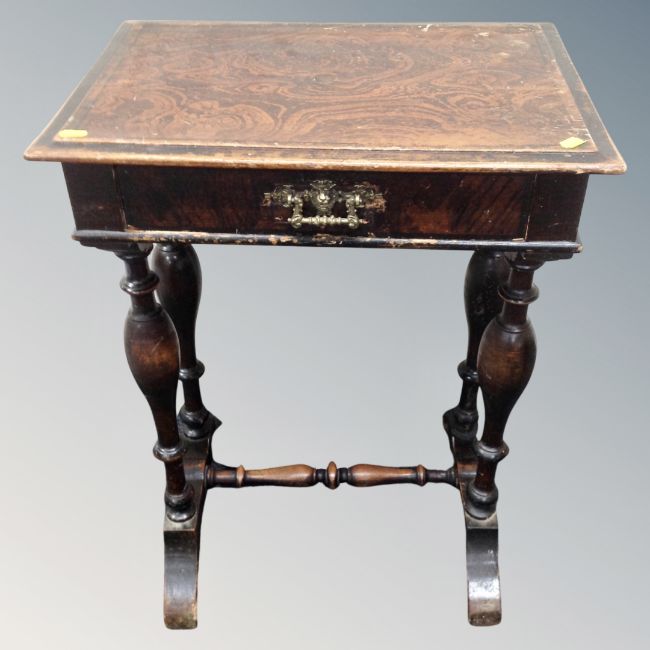 A 19th century work table with under stretcher