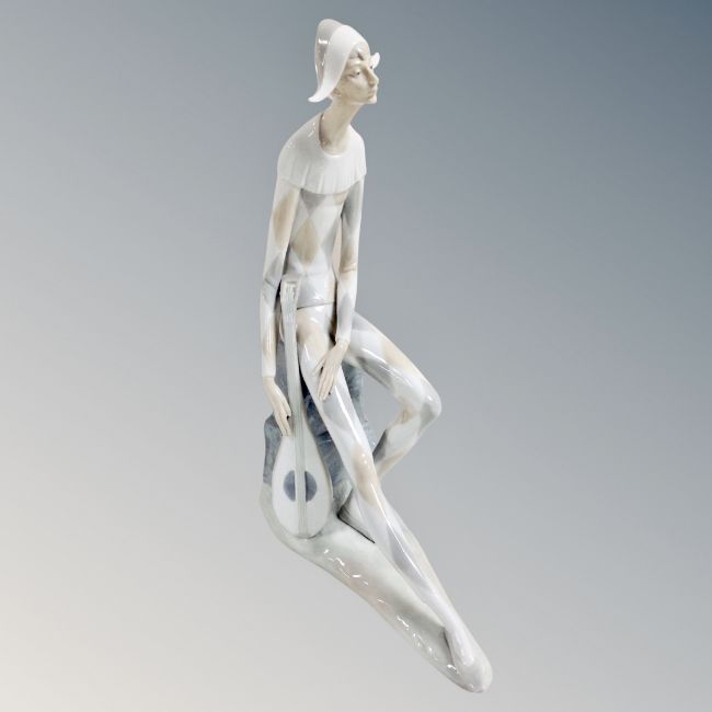 A Nao figure of a Harlequin with mandolin