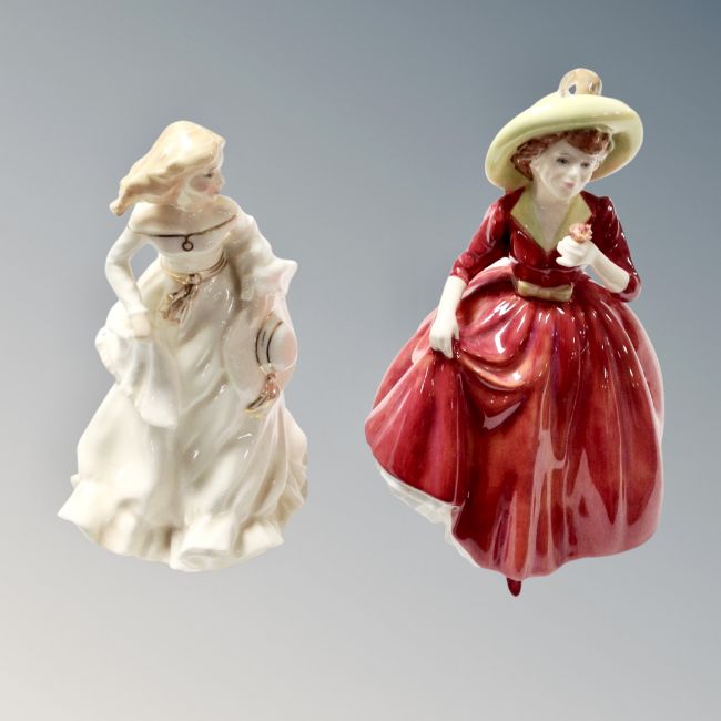 Two Royal Doulton figures : Summer Breeze HN 3724 and a single red rose HN 3376