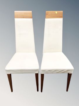 A contemporary extending dining table with leaf and a set of four wood and leather high back dining chairs