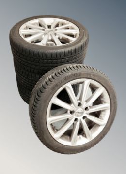 A set of four alloy mega wheels with Michelin Alpin 5 and Rordex snow tyres