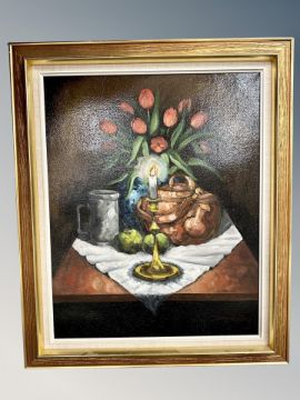 Continental School : Still life of tulips, oil on canvas, 74 cm x 59 cm