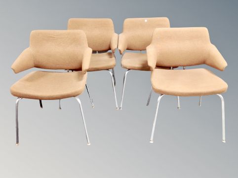 A set of four 20th century Danish armchairs in cinnamon upholstery