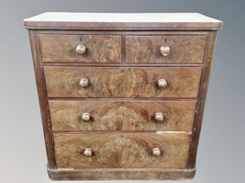 A Victorian mahogany five drawer chest