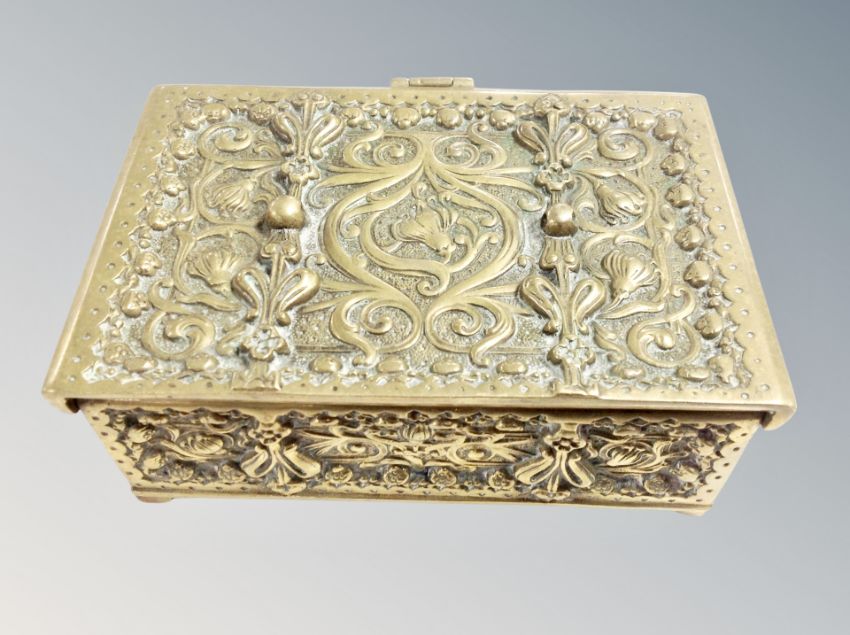 An ornate cast brass box in Art Nouveau style, width 16 cm