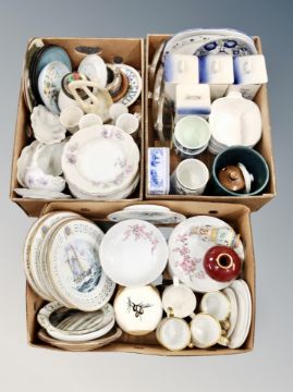 Three boxes of assorted continental ceramics, collectors plates, kitchen storage jars etc.