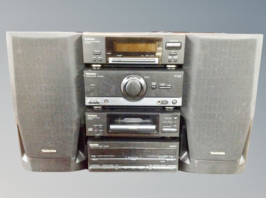 A four piece Technics mini hifi separates system with speakers